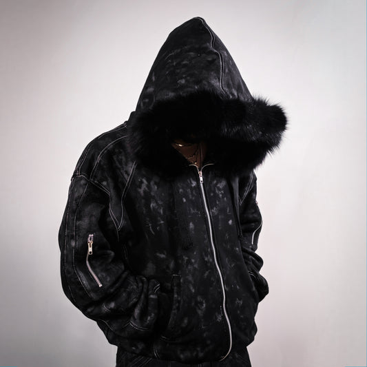 SaleBLACK FUR HOODIE